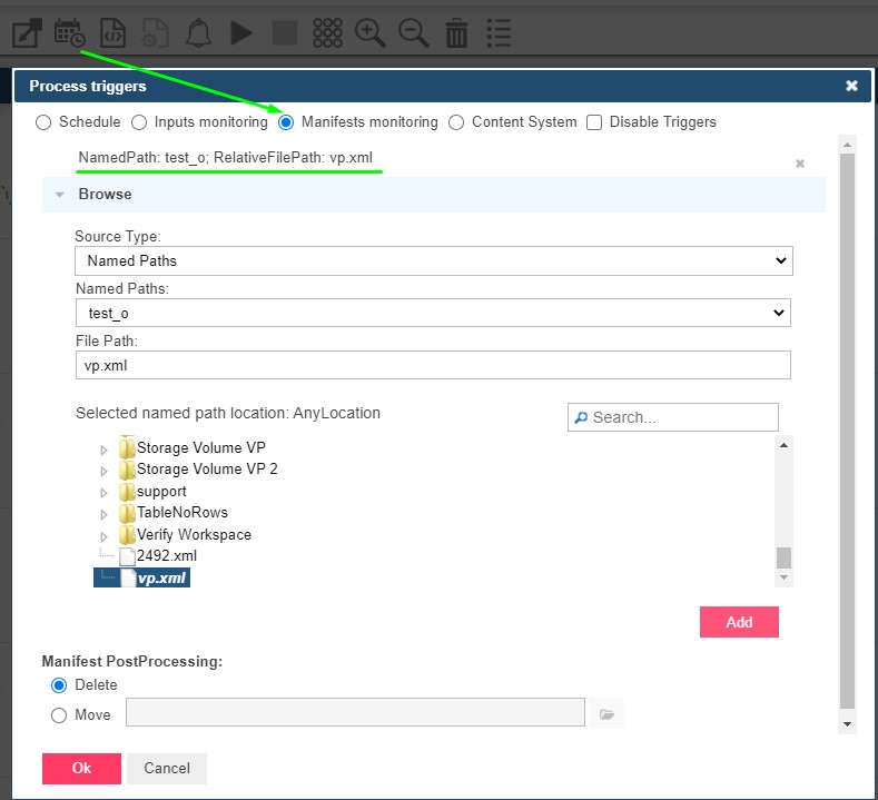 • When a new manifest monitoring file is added to Triggers for a process