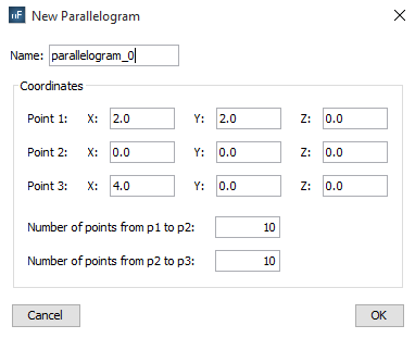 Click on OK button to insert the observation points from the parallelogram, or abort the insertion by clicking on Cancel button.