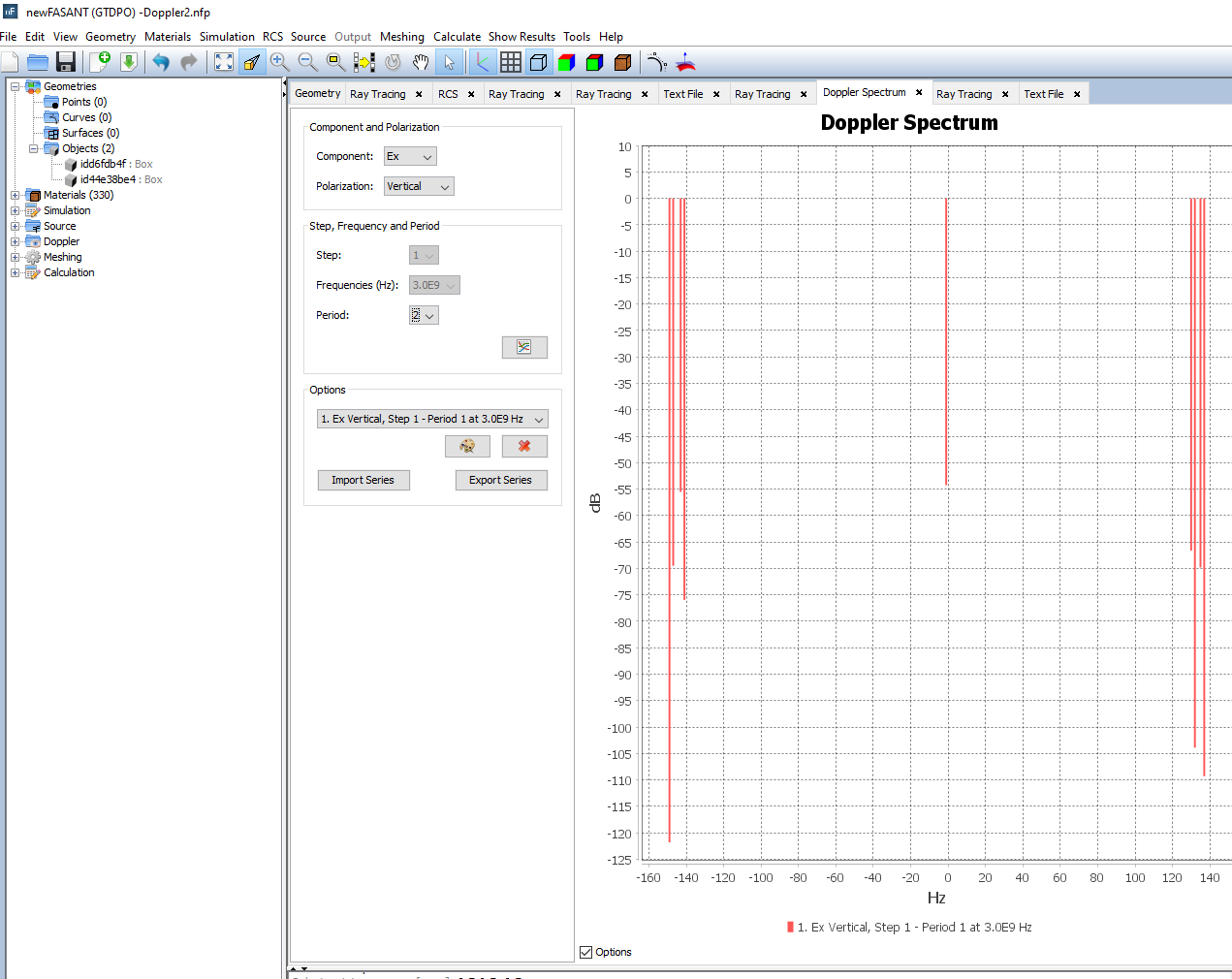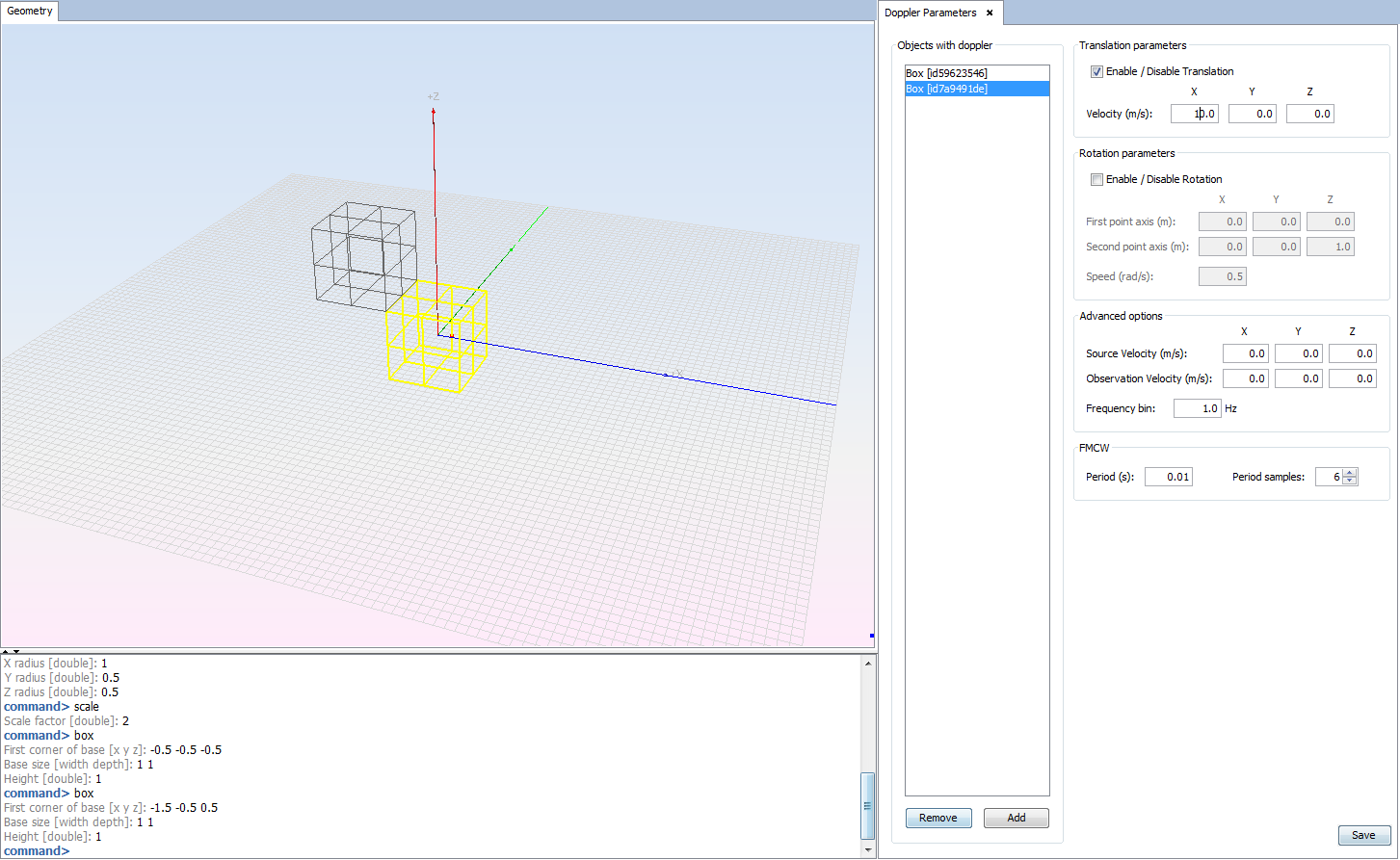 In this example, the Doppler spectrum of two boxes moving along the x-axis has been analyzed.