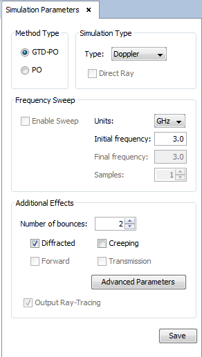 Figure 3. Simulation parameters panel.