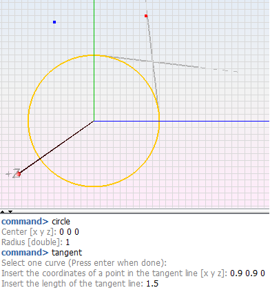 This option generates tangent segments to the selected curve that cross the introduced point. Only one curve must be selected.