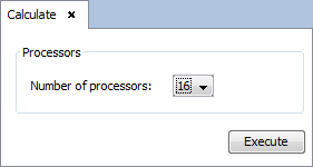 Select 'Calculate --> Execute' option to open simulation parameters. Then select the number of processors as the next figure show. In order to obtain the shortest possible time for calculating the results,it is recommended to run the process with the number of physical processors available to the machine.