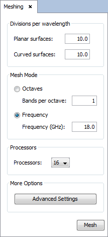 Figure 12. Meshing panel