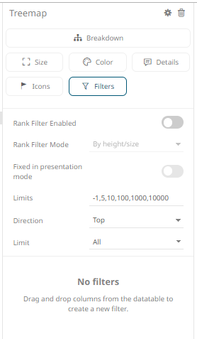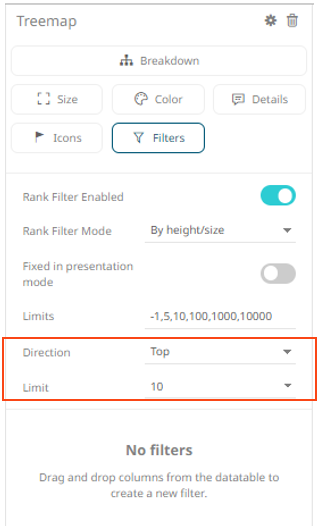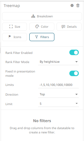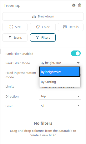 Rank Filter is available in all non-time series visualizations that use the Size or Height variable:
