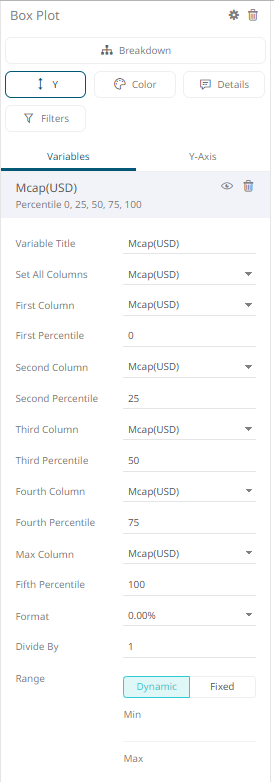 1. On the Visualization Settings pane, click the Y (BoxPlot) variable.