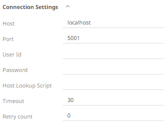 Host, Port, User Id, Password, and Host Lookup Script can be parameterized.