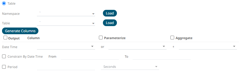 6. When Table is selected, the section below is enabled: