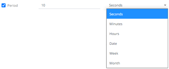14. In kdb+, you can modify the query to regroup the aggregated data per time units (i.e., Seconds, Minutes, Hours, Date, Week, Month). Check the Period box, enter the time duration and click then select the time unit.