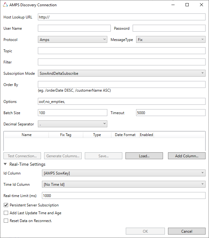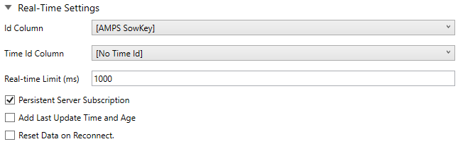 NOTE: The default Id Column for the AMPS connector is AMPS SowKey which is used by AMPS to identify a message by this unique key.