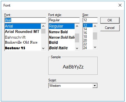 Click Change to display the Font dialog where you can set the new Font Type, Style, Size, and Script.