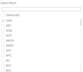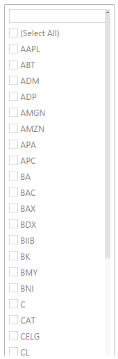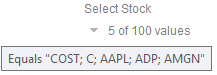Expanding the drop list displays the list of unique values retrieved from the selected column that was dragged onto the drop-down.
