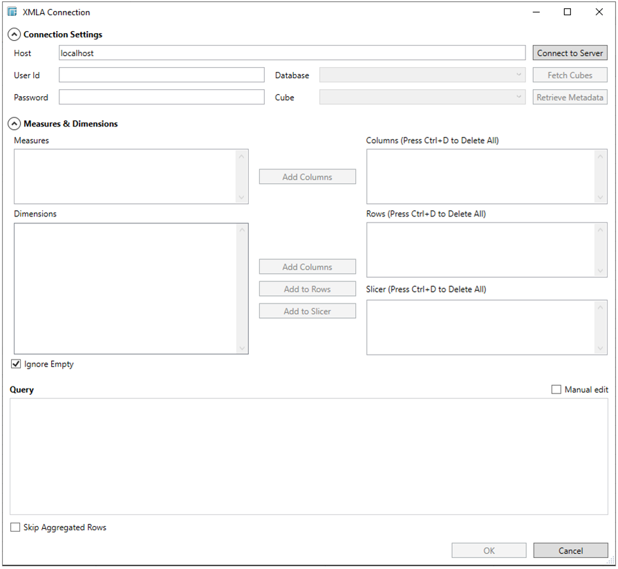 check the Manual Edit box to manually edit the XMLA query, or