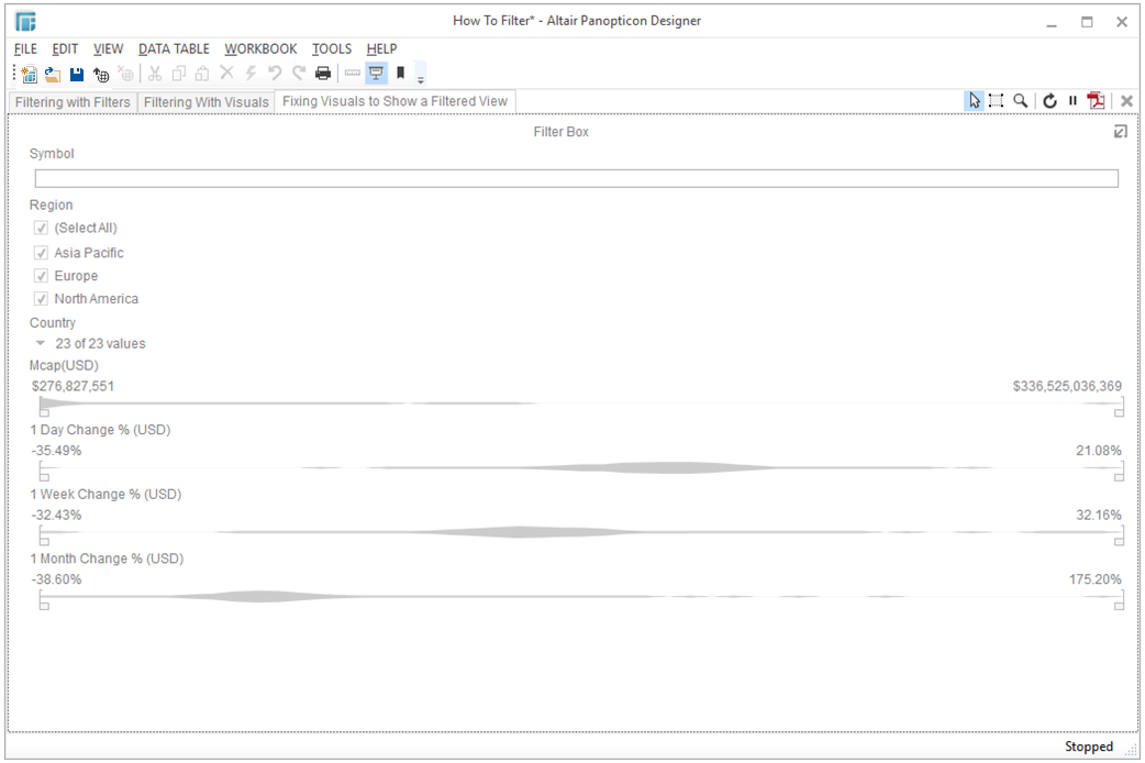 The border and handles are displayed, allowing resizing and repositioning of the Filter Box.