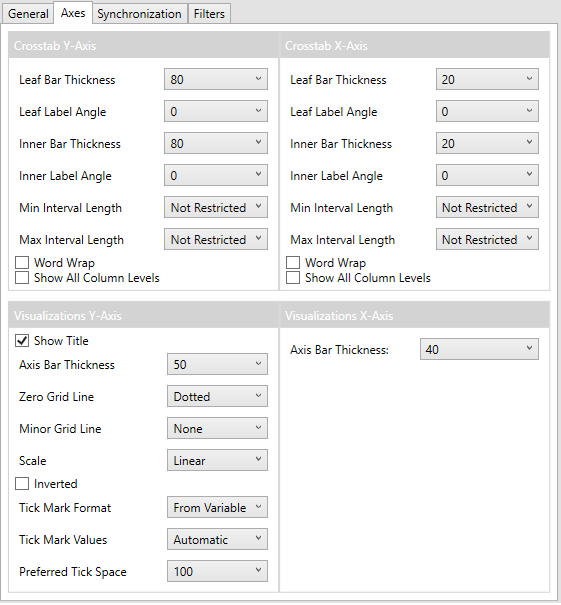 Refer to Cross Tab Axes and Visualizations Axes for more information.