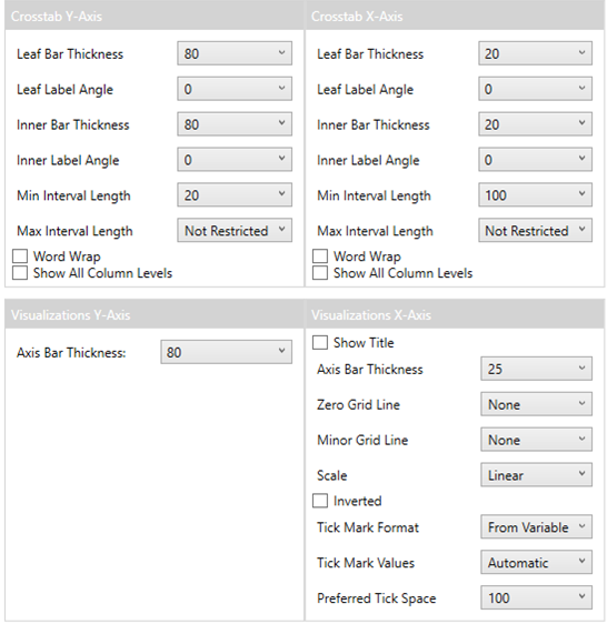 Refer to Cross Tab Axes and Visualizations Axes for more information.