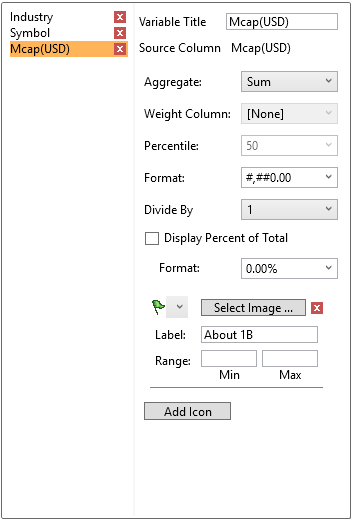 Clicking the Add Icon button with a numeric column displays an additional panel.