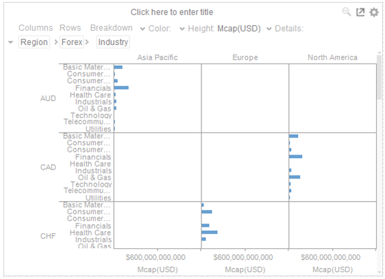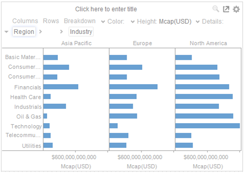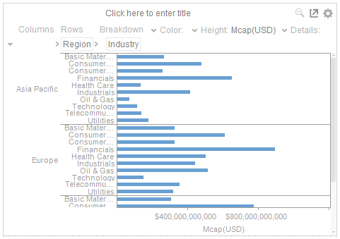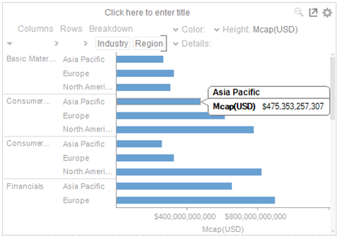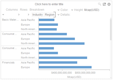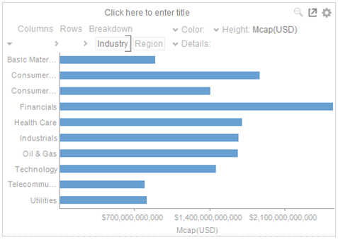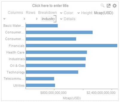 A Bar Graph without a breakdown will show a single bar. For the example below, the Mcap(USD) column was dragged and dropped to the Height variable.