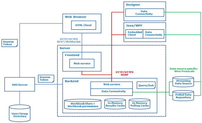 Underlying the Panopticon Server provides access to data and workbooks as directed.