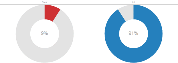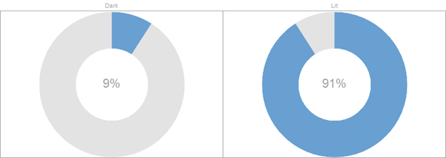 Donut Gauge Charts can be individual, or displayed in cross tabs, highlighting differences between items.