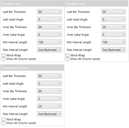 Refer to Visualizations Axes and Cross Tab Axes for more information.