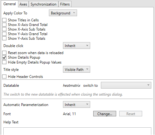 Determines whether to display the grand total of the values of the Color and Detail variables on the Y-axis (either as data in the cells or in the Pop-up). |