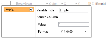 Clicking on the [Empty] value highlights this section and currently displays as the associated value of the Height variable. By default, the value is set to 1.