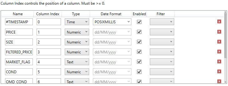 Click the Generate Columns button. This will query the OneTick Cloud for the first few records and attempt to build your table schema from that information.