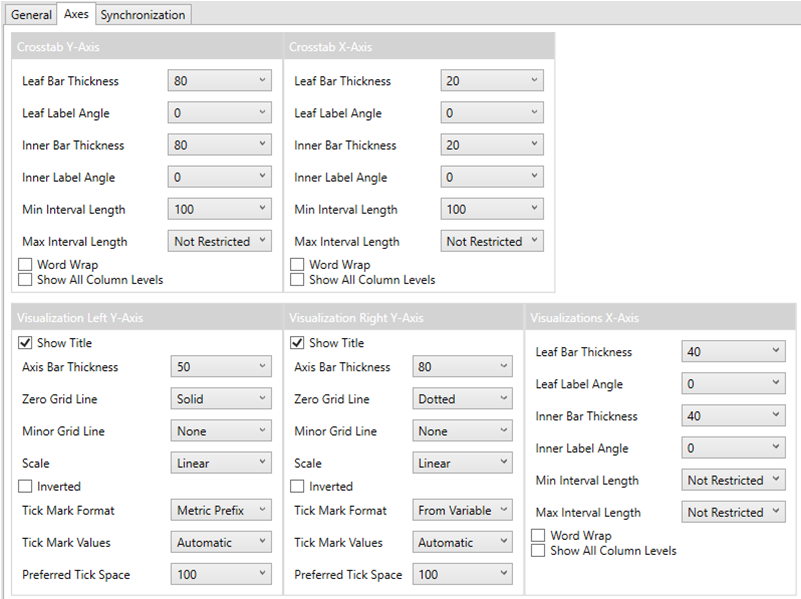 Refer to Cross Tab Axes and Visualizations Axes for more information.