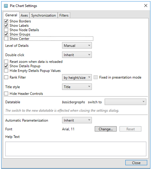 Starting version 13.1, the ability to show node details in the pie chart visualization was added. For pie charts created before the feature was available, the Show Node Details option is displayed in the Pie Chart Settings dialog to enable the node details feature.