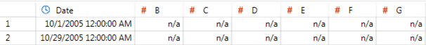 In the example above, you manually entered A, B, C, D, E, F, G into the Measure Values box. If you skip a value such as A, the transformed data will display as: