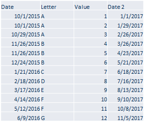 In the original dataset, the three rows with the A value had the dates 10/1/2015 12:00:00 AM and 10/29/2015 12:00:00 AM: