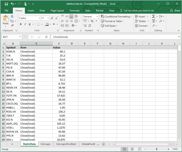 A common format for database sourced data is key value pairs. As an example below, price changes are listed as key value pairs for a set of symbols.