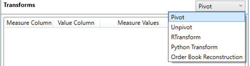 Enter the possible Measure Values, which are listed in the Measure Column, and will become output columns of the pivot data transform.