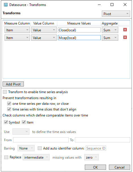 NOTE: In cases where some columns cannot be aggregated after pivoting, it is recommended to select the None aggregate. This aggregate is only available in the Panopticon Visualization Server.