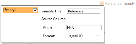 Clicking on the [Empty] value highlights this section and currently displays as the associated value of the Reference variable. By default, the value is set to NaN.