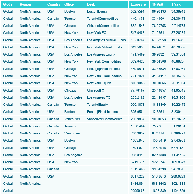 An example data format is included below, which first lists the lowest level data, followed by the aggregates.  The Column titled Desk defines whether the row is aggregate or a leaf value.