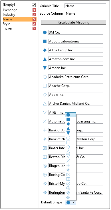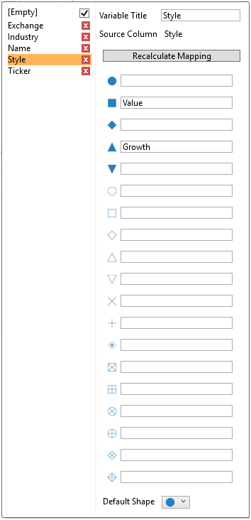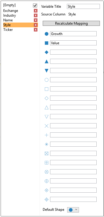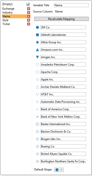 For columns that are not mapped to a shape, select the Default Shape to be used.