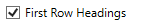 The First Row Headings checkbox determines if the first row should specify the retrieved column headings, and not be used in data discovery.