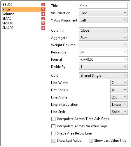 NOTE: To enable the Show Last Value and Show Last Value Title check boxes, the Y Axis Alignment must be set to Right.