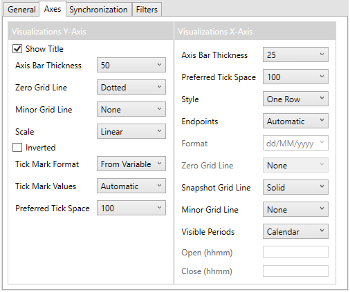 Refer to Cross Tab Axes, Visualizations Axes, and Time Axes for more information.