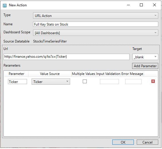 Click OK to confirm the creation of the new URL action.
