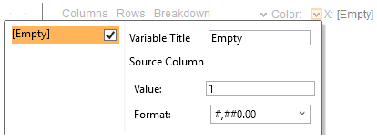 Clicking on the [Empty] value highlights this section and currently displays as the associated value of the X or Y variable. By default, the value is set to 1.
