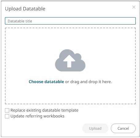 A user with an Administrator role can upload data tables in the Panopticon Visualization Server.