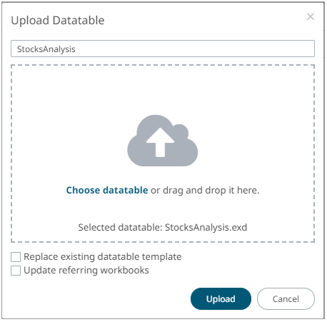The Upload Data Table dialog displays.