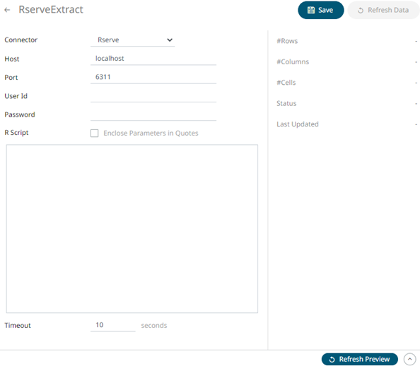 1. On the New Data Extract page, select Rserve in the Connector drop-down list.