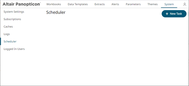 On the Scheduler tab of the System Settings page, Panopticon Visualization Server allows scheduling of tasks.