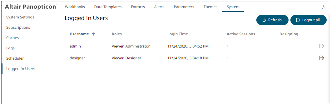 Except for the user (i.e., admin) who is calling out the logging out of the other users, all of the other users are logged out.