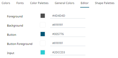 21. To set the Foreground, Background, Button, Button Foreground, and Input colors for the editor style of the Dark theme, click the Editor tab.