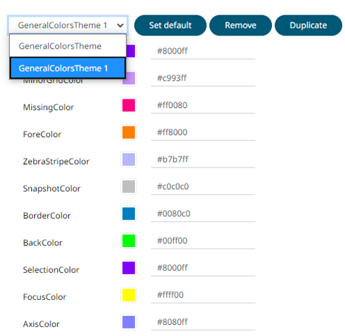 By the default, the new General Colors is named GeneralColorsTheme. This is the default general colors for the new theme and cannot be deleted.