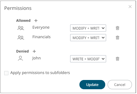 · leave the Apply Permissions to Subfolders boxunchecked and modify the permission properties of the subfolders